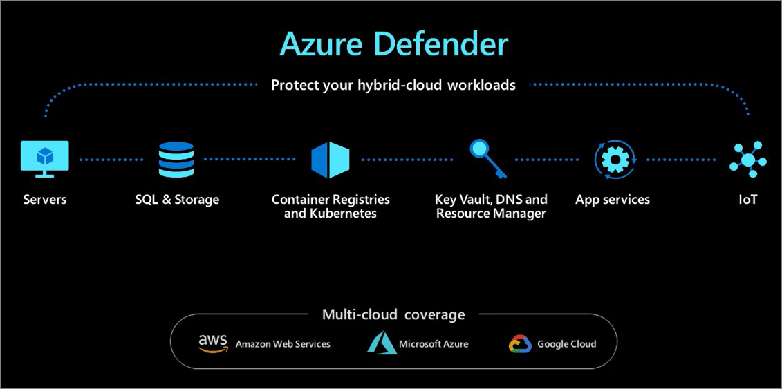 Azure Defender – With Azure Defender security capabilities of the Security center can be enhanced and extended to on-prem, cloud, multi-cloud, and hybrid workloads